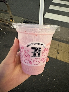 セブンの新作スムージー!!いちごミルク味だよー!思ったより美味しかった🥺でも400円もした…