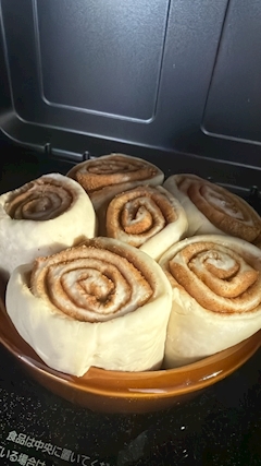 この前シナモンロール作ったんだなも❗️ 容器が小さすぎて中が焼けなかった。。リベンジする。。